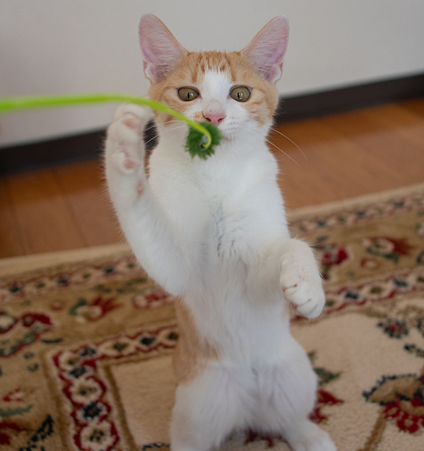 毎日30分は「じゃれ猫ブンブン」「カシャカシャびょんびょん」(お気に入りのおもちゃ)を振ってる。疲れた……。
