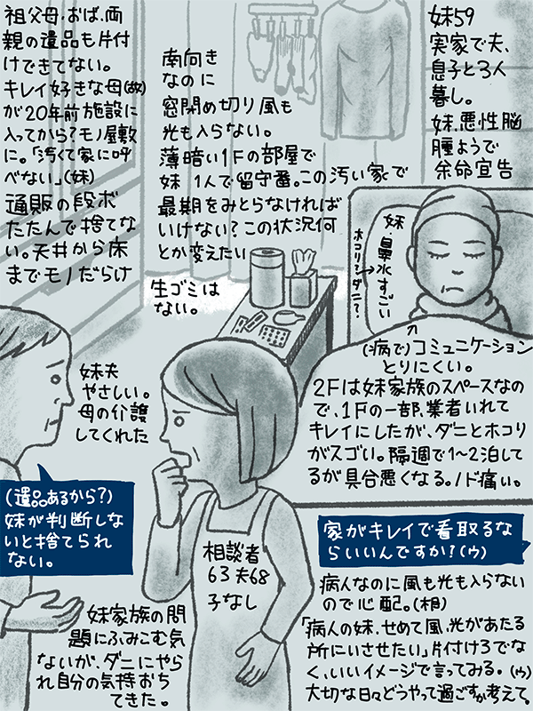風も通らず光も入らない汚い家で妹を看取らなければならないのか?