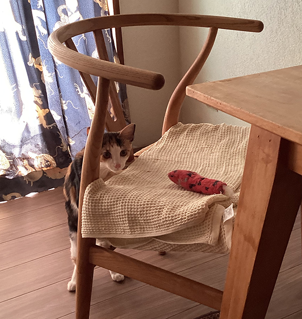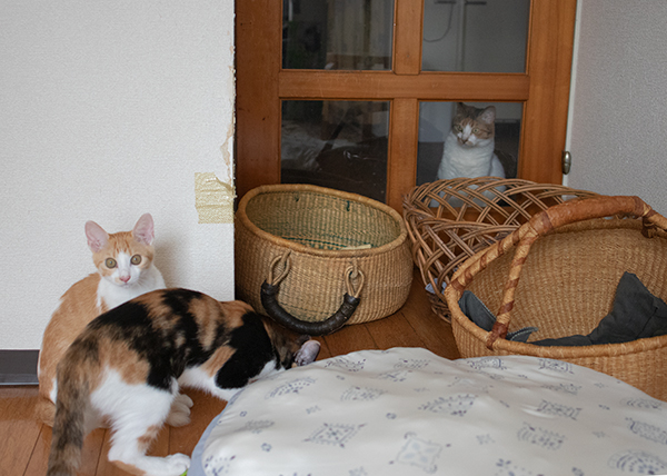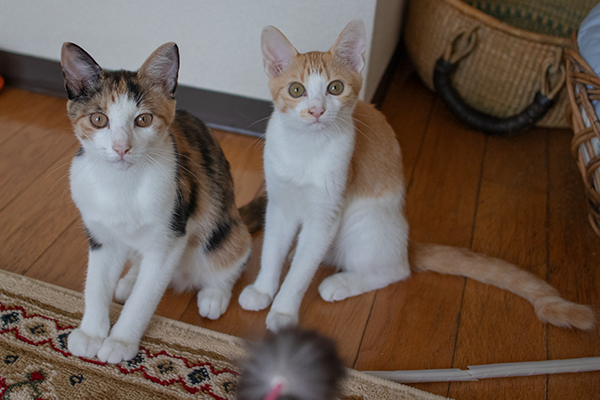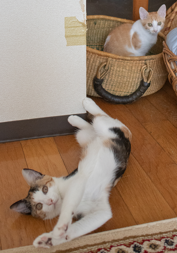 よく食べ激しく遊ぶ三毛に対し、若干食が細めで動きもスローな茶白。心配だ!
