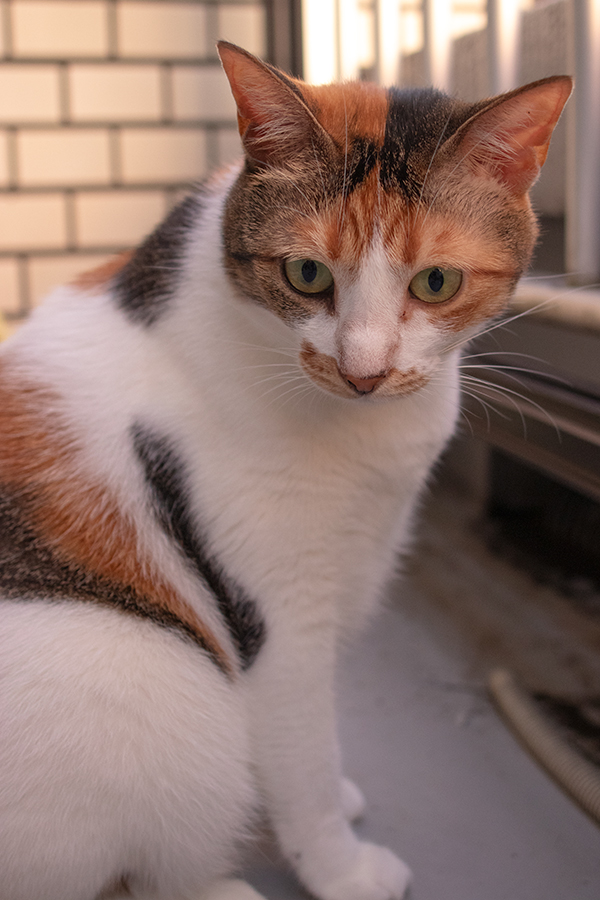 夕日に映えるミケーネたん。ウチに来たのは2020年の秋。貫禄ついた。