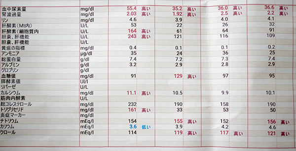 (血中尿素量BUNと、リンの値の上昇が証拠…)