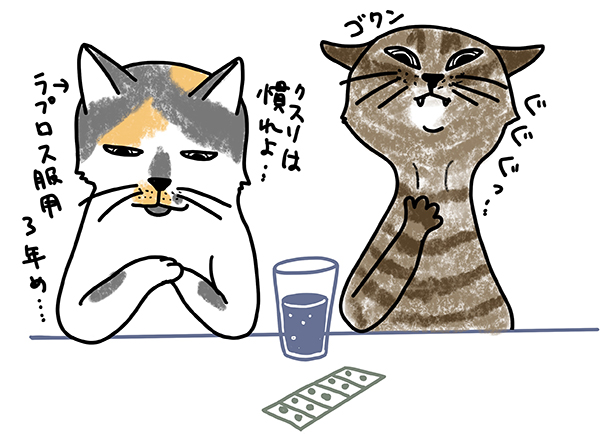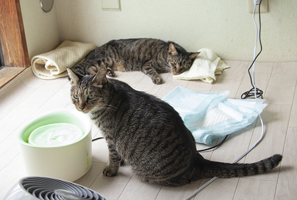 「水ぶくれ」にステロイド注入した頃から異様な食欲、水摂取(&排尿量)増加、わめくように鳴くのが続いてるので