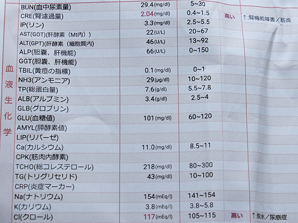 (血中尿素量BUNと、リンの値の上昇が証拠…)