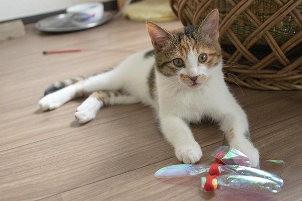踊るミケーネ 2件の返信 昨日ヨドバシドットコムで買った「カシャカシャじゃれるかぶと虫」(¥201、安い)。 さっそくミケーネちゃんに。 協力/近所のKatoさん。 さすが食いつきのいいペッツルートのおもちゃ。ミケーネちゃん夢中。 30分程度で羽取れた。(破壊)