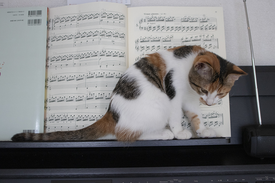 ミケーネちゃん2 コメントを残す 今日もよく遊びました、ミケーネちゃん。 3週間近く前は棚の隙間や箱の奥でシャーシャー言ってたのが嘘みたい。 ピアノ練習中。目指せジョン・ケージ。 ビーたん。ミケーネを見ると今だに威嚇。