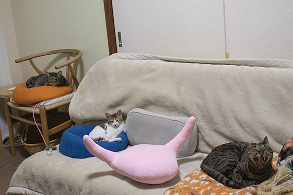ミケーネちゃん7 2件の返信 もはやウチで態度が一番デカい猫、ミケーネ……。 シニアちゃんズも怖く無い模様(シニアちゃんズはミケーネに威嚇) ビーたん用の青いフェルトポッドがミケーネに取られたので もう一つ買わなきゃねえ、フェルトポッド。 近所のヨーカドーがもうクリスマス仕様。早くないか? 冬至が近づくにつれ夕焼けの色がキレイになっていくハズ。